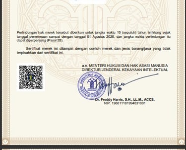 Perlindungan Hukum: Apabila ada pihak yang mencoba meniru atau menggunakan merek secara ilegal, pemilik merek terdaftar memiliki dasar hukum yang kuat untuk menuntut.