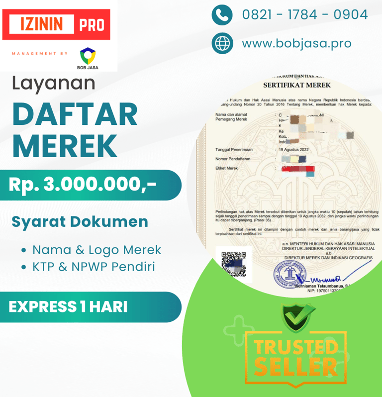Izinin Pro Biro Jasa Pembuatan Pendaftaran Pengurusan Izin Patent Daftar Merek Merk Produk Jasa di Kota Kabupaten di Indonesia