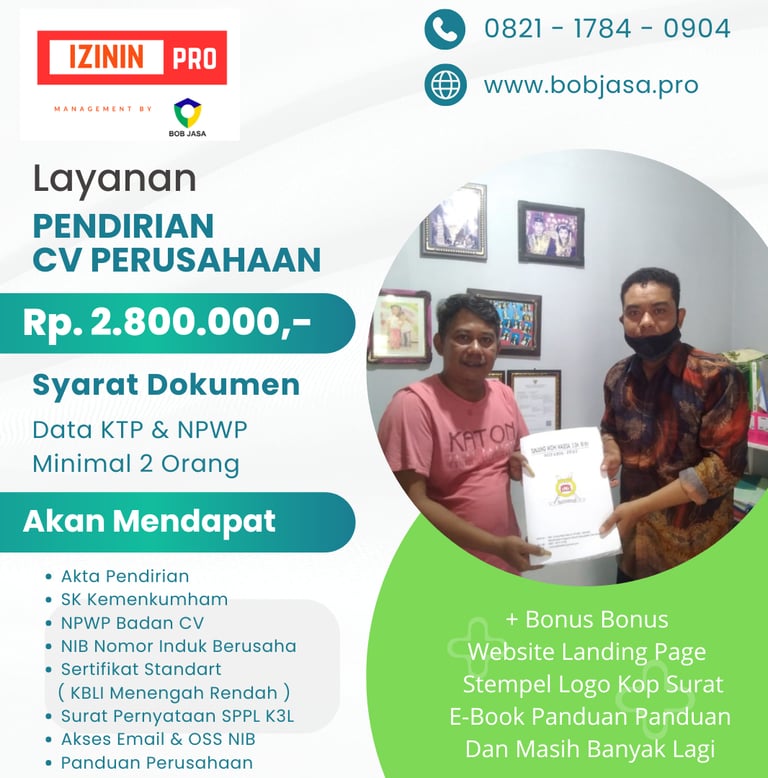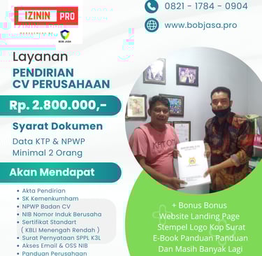 Izinin Pro Jasa Pengurusan Pendirian Pembuatan Pendaftaran Legalitas Izin Usaha CV Perusahaan Badan Usaha di Kota Kabupaten di Indonesia