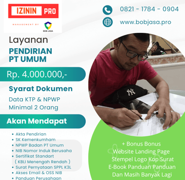 Izinin Pro Jasa Pengurusan Pendirian Pembuatan Pendaftaran Legalitas Izin Usaha PT Umum Biasa Perseroan Perusahaan Badan Usaha di Kota Kabupaten di Indonesia