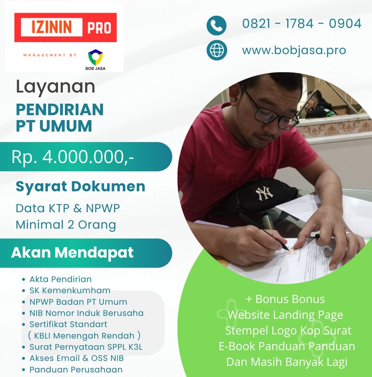 Izinin Pro Biro Jasa Pembuatan Pendaftaran Pengurusan Pendirian Legalitas Izin Usaha PT Umum Biasa Perseroan Perusahaan Badan Usaha Resmi Baru Terpercaya Terdekat di Cilegon, Lebak, Pandeglang, Serang, Tangerang, Tangerang Selatan, Jakarta Barat, Jakarta Pusat, Jakarta Selatan, Jakarta Timur, Jakarta Utara, Bandung, Banjar, Bekasi, Bogor, Cimahi, Cirebon, Depok, Sukabumi, Tasikmalaya, Bandung Barat, Bekasi, Bogor, Ciamis, Cianjur, Cirebon, Garut, Indramayu, Karawang, Kuningan, Majalengka, Pangandaran, Purwakarta, Subang, Sukabumi, Sumedang, Tasikmalaya, Magelang, Pekalongan, Salatiga, Semarang, Surakarta, Tegal, Banjarnegara, Banyumas, Batang, Blora, Boyolali, Brebes, Cilacap, Demak, Grobogan, Jepara, Karanganyar, Kebumen, Kendal, Klaten, Kudus, Magelang, Pati, Pekalongan, Pemalang, Purbalingga, Purworejo, Rembang, Semarang, Sragen, Sukoharjo, Tegal, Temanggung, Wonogiri, Wonosobo, Yogyakarta, Bantul, Gunungkidul, Kulon Progo, Sleman, Batu, Blitar, Kediri, Madiun, Malang, Mojokerto, Pasuruan, Probolinggo, Surabaya, Bangkalan, Banyuwangi, Blitar, Bojonegoro, Bondowoso, Gresik, Jember, Jombang, Kediri, Lamongan, Lumajang, Madiun, Magetan, Malang, Mojokerto, Nganjuk, Ngawi, Pacitan, Pamekasan, Pasuruan, Ponorogo, Probolinggo, Sampang, Sidoarjo, Situbondo, Sumenep, Trenggalek, Tuban, Tulungagung, Solo.